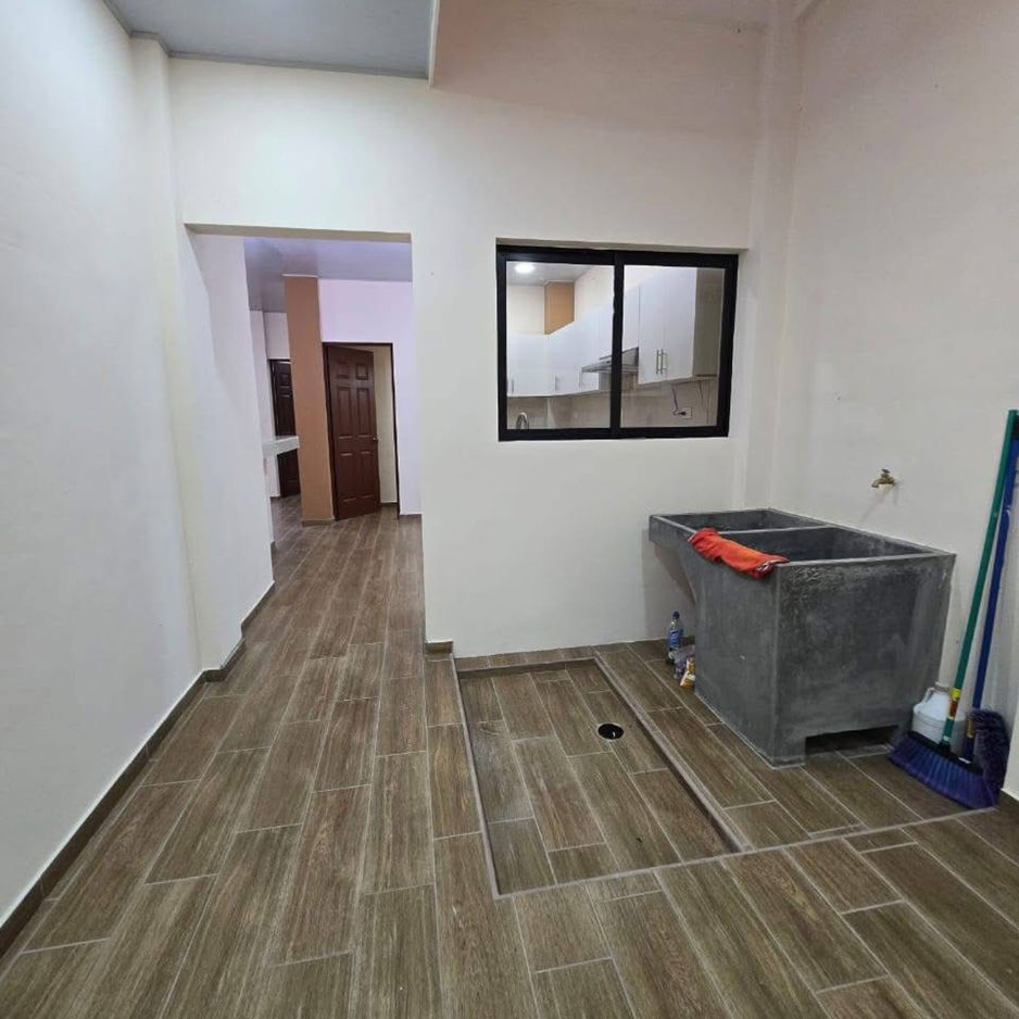segundo nivel: terraza, sala de estar, dos habitaciones con closet y baño compartido.